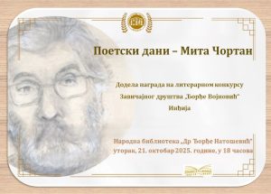 Свечана додела награда на литерарном конкурсу Завичајног друштва „Ђорђе Војновић“ у оквиру манифестације Поетски дани – Мита Чортан, одржаће се у Народној библиотеци „Др Ђорђе…