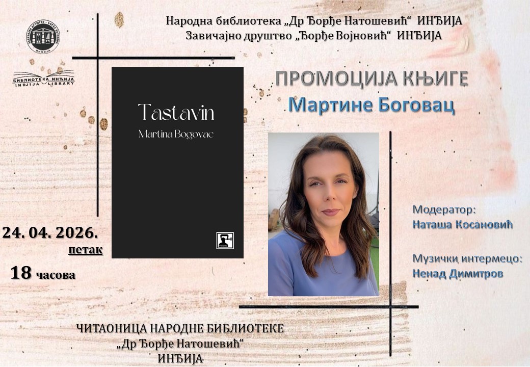 У петак, 24. априла 2026. године, са почетком у 18 часова, Народна библиотека „Др Ђорђе Натошевић“ биће домаћин књижевне вечери посвећене завичајној ауторки Мартини Боговац и промоцији њене нове збирке поезије „Таставин“.