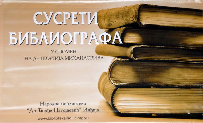Библиотека је организатор Сусрета библиографа у спомен на др Георгија Михаиловића, стручно-научног скупа посвећеног теоријским и практичним аспектима српске библиографије. Посвећени су успомени на др Георгија Михаиловића, Инђинчанина, лекара по професији, али превасходно љубитеља, сакупљача и познаваоца старе и ретке књиге, аутора капиталног дела Српска библиографија XVIII века.